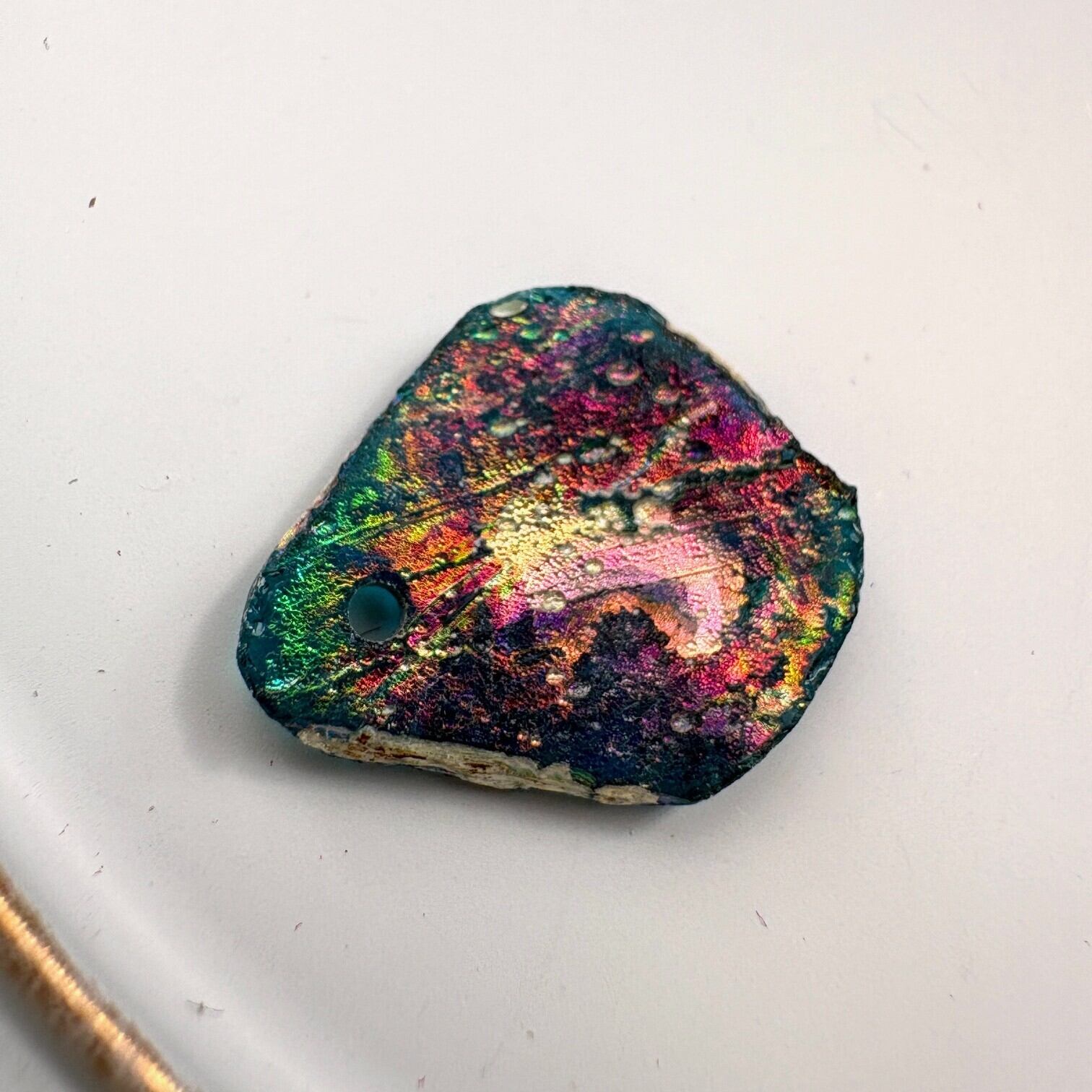 また、通し穴がついているのでご自分でアクセサリー製作等に活用する事も可能です。
