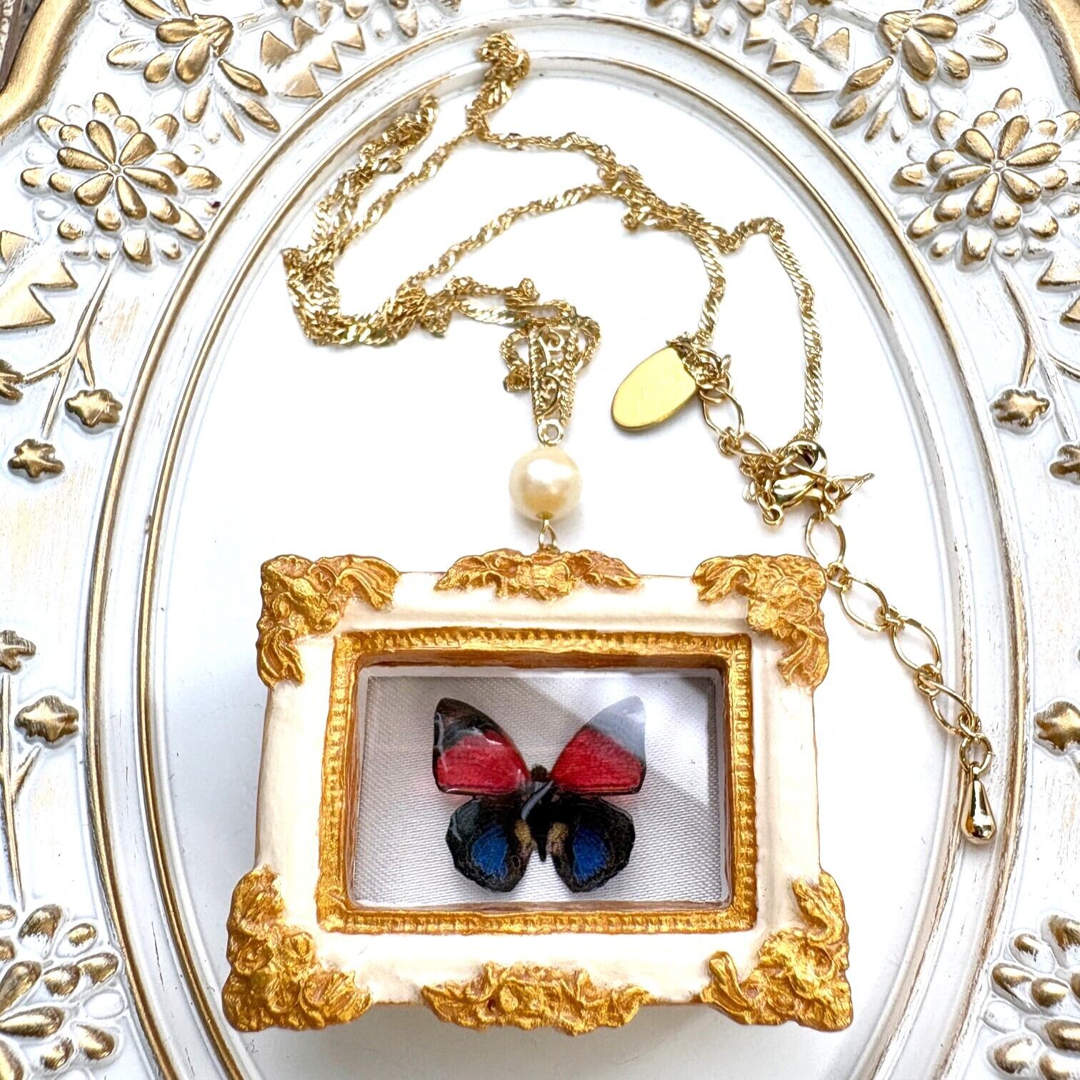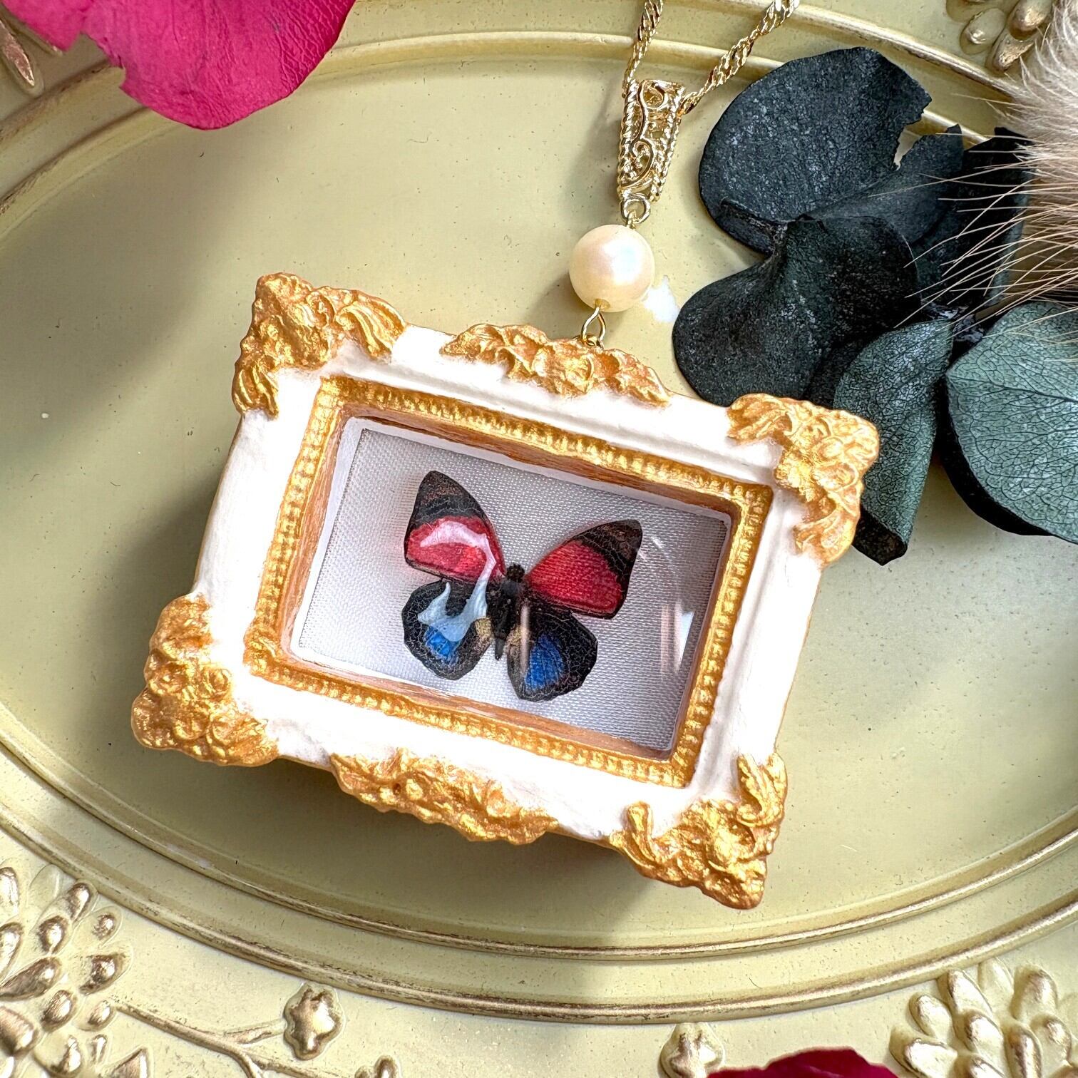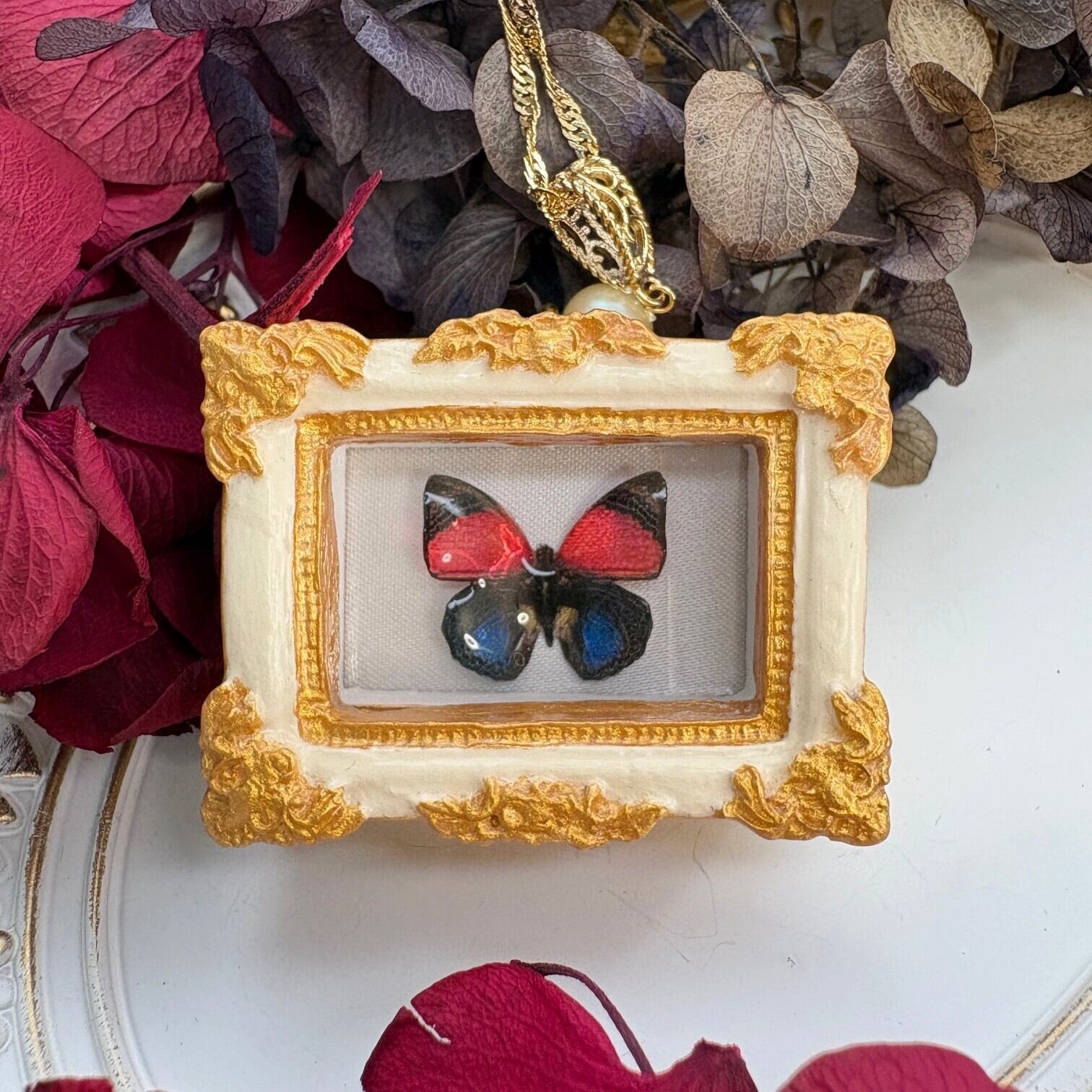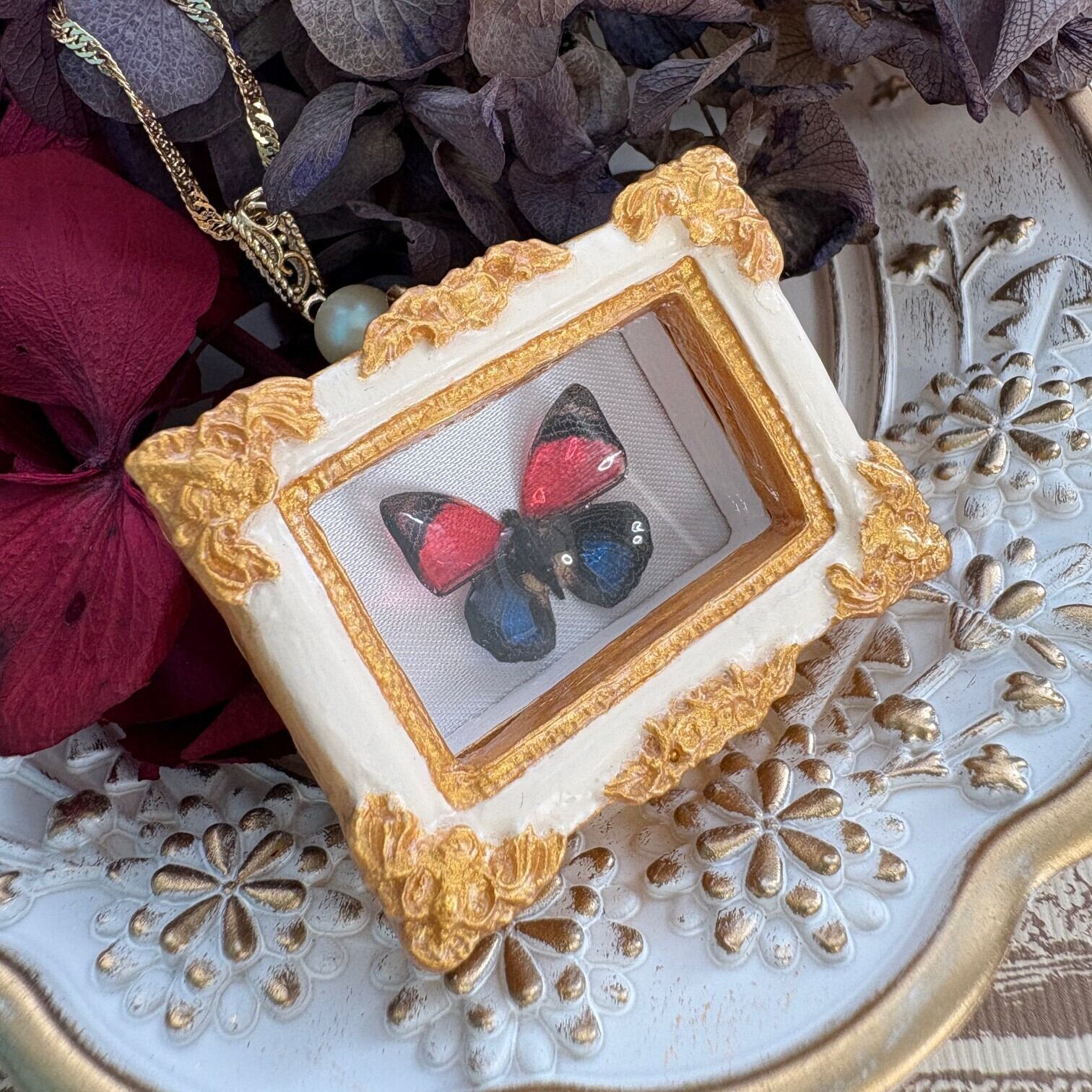クラウディナ ミイロタテハ アグリアス 標本 箱 蝶 翅 羽 青 ブルー 赤 虫 ネックレス コスチュームジュエリー アンティーク ヴィンテージ 金 ゴールド プレゼント ギフト パーティ 宝石 ウェディング 普段 エレガント ラグジュアリー ドレス ブライダル ロリータ ロリィタ ゴシック ゴスロリ ジュエリー 個性的 大 博物 アクセサリー 一点物