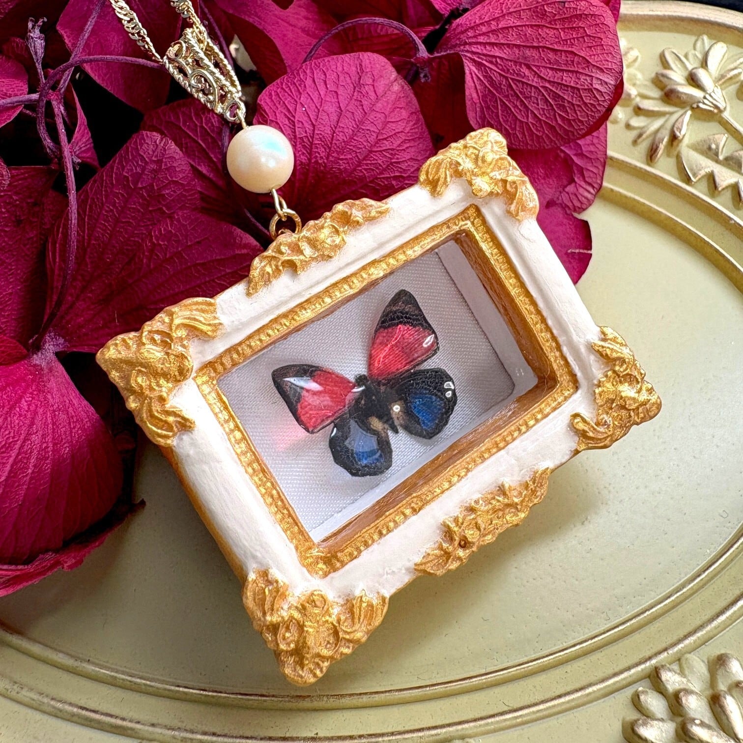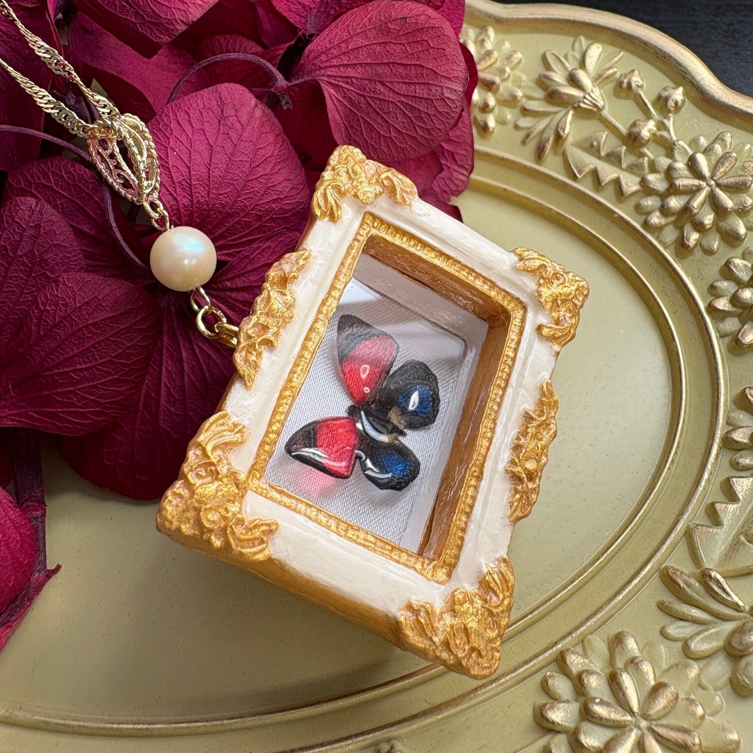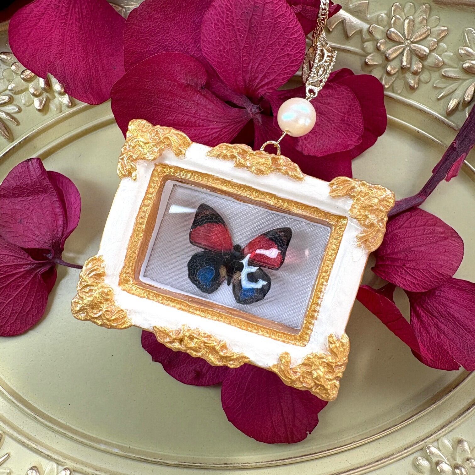 クラウディナ ミイロタテハ アグリアス 標本 箱 蝶 翅 羽 青 ブルー 赤 虫 ネックレス コスチュームジュエリー アンティーク ヴィンテージ 金 ゴールド プレゼント ギフト パーティ 宝石 ウェディング 普段 エレガント ラグジュアリー ドレス ブライダル ロリータ ロリィタ ゴシック ゴスロリ ジュエリー 個性的 大 博物 アクセサリー 一点物