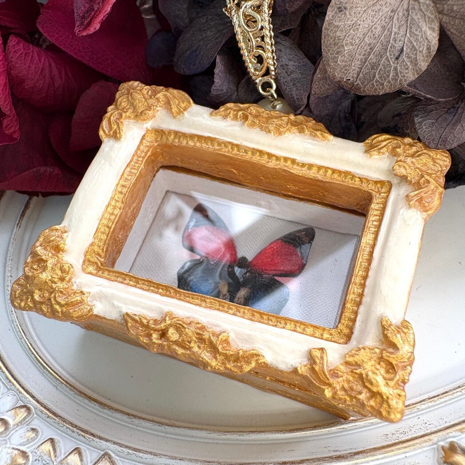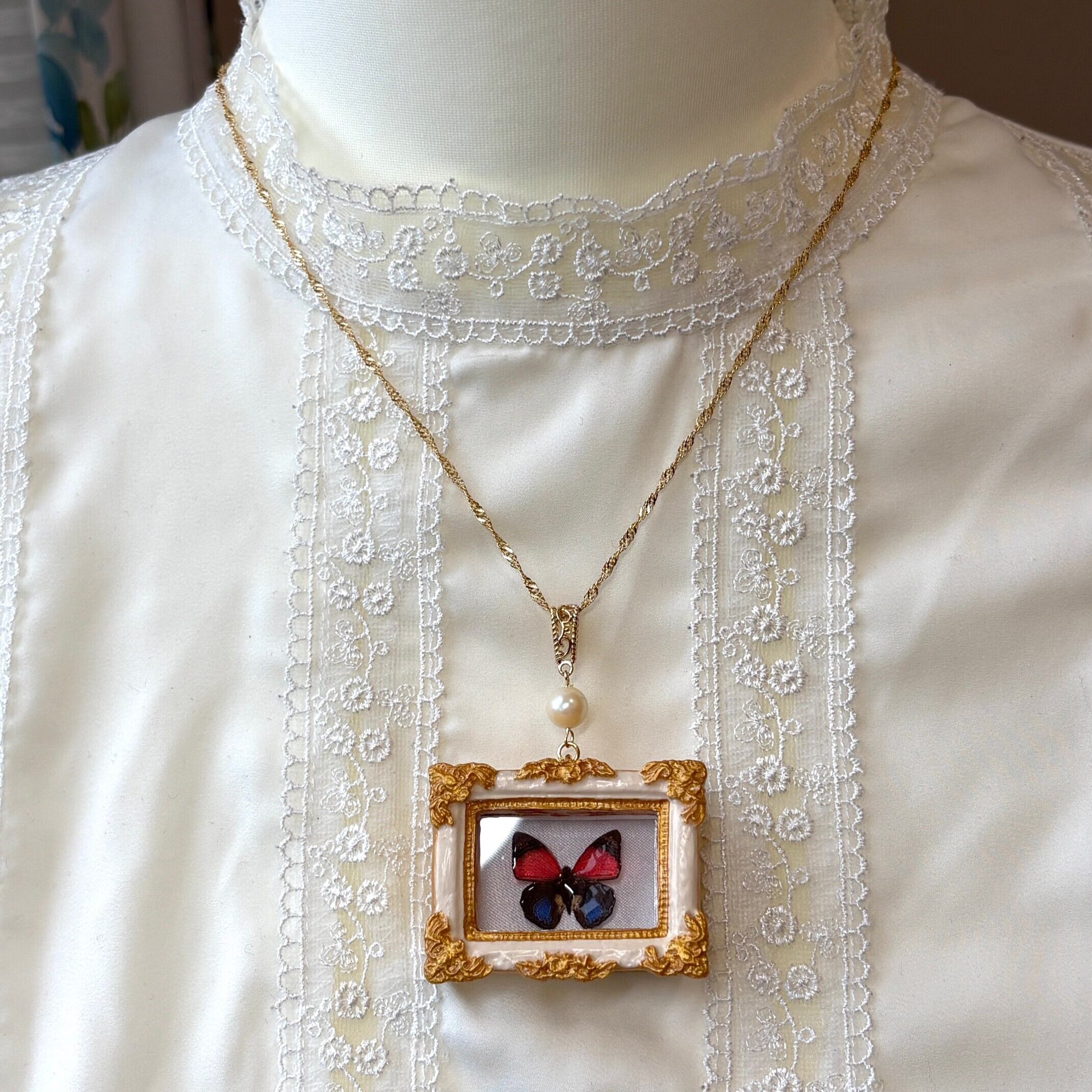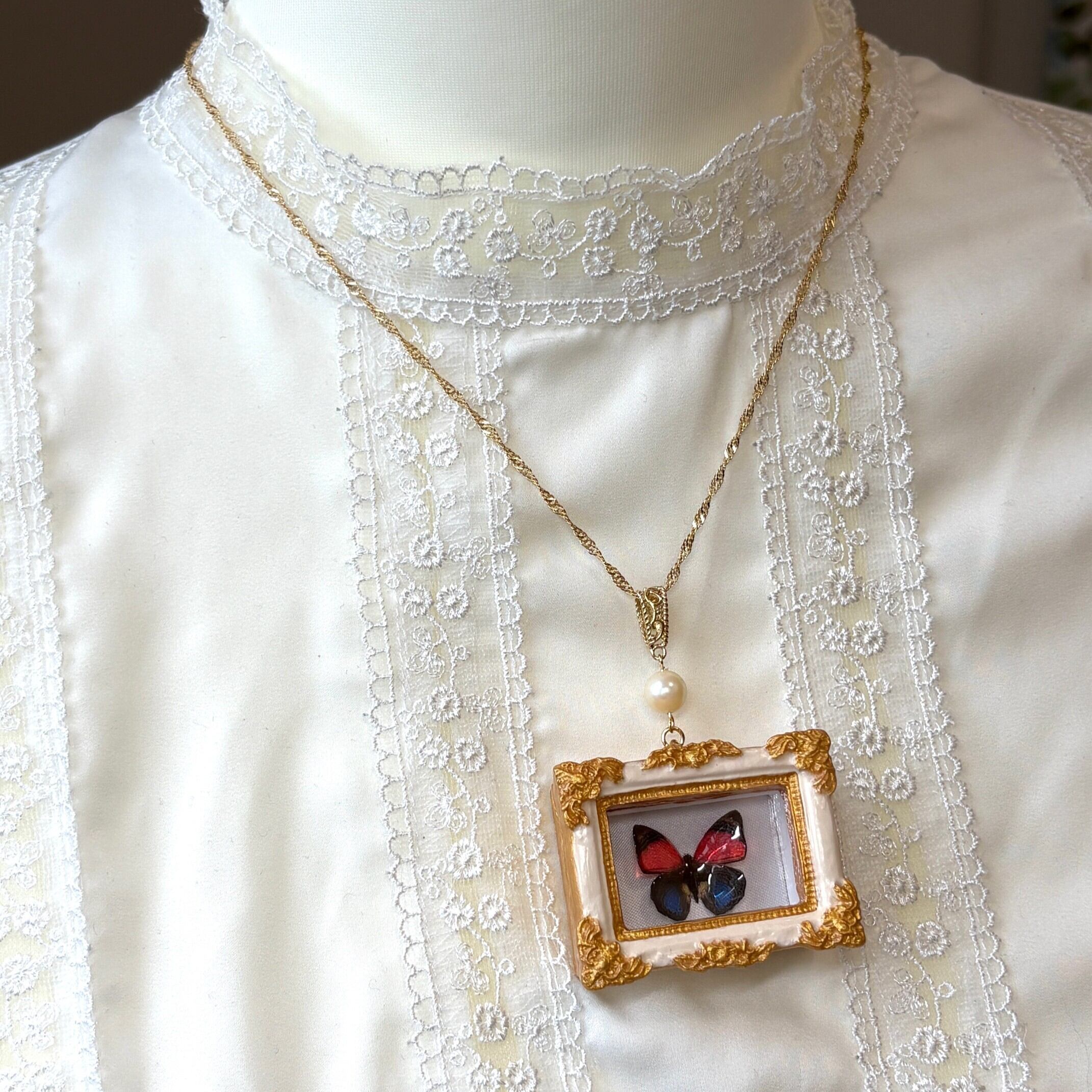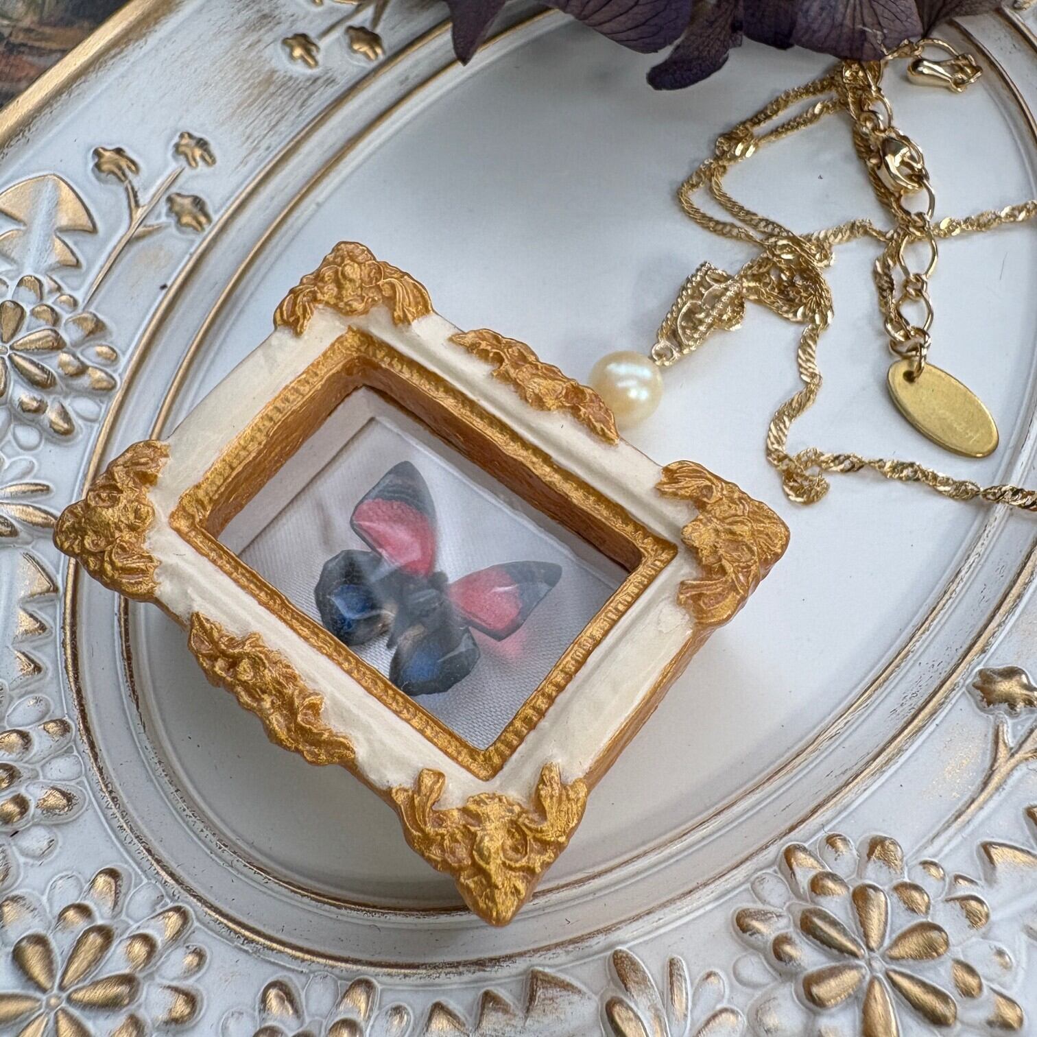 クラウディナ ミイロタテハ アグリアス 標本 箱 蝶 翅 羽 青 ブルー 赤 虫 ネックレス コスチュームジュエリー アンティーク ヴィンテージ 金 ゴールド プレゼント ギフト パーティ 宝石 ウェディング 普段 エレガント ラグジュアリー ドレス ブライダル ロリータ ロリィタ ゴシック ゴスロリ ジュエリー 個性的 大 博物 アクセサリー 一点物